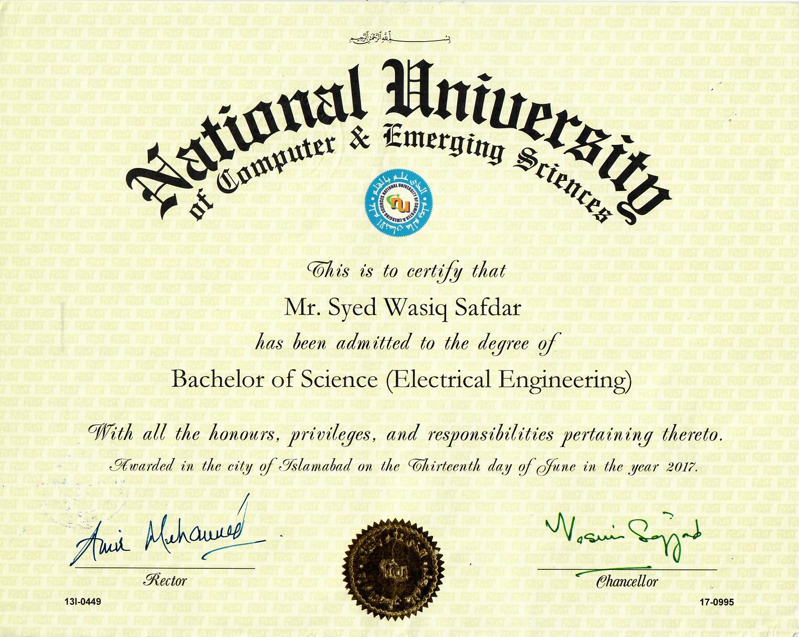 In 2013, I joined FAST National University as a bachelor student in Electrical Engineering. During 4 years of my degree following were main courses.